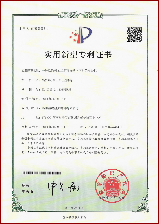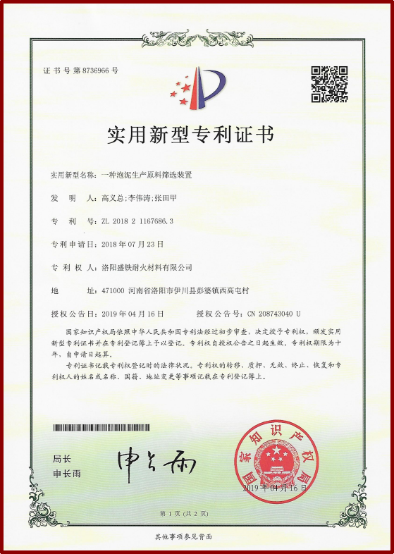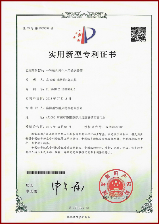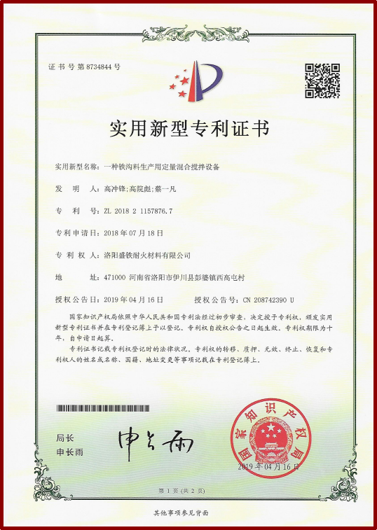 公司擁有先進(jìn)的管理體系,先后通過了ISO9001質(zhì)量、環(huán)境、職業(yè)健康安全國 際管理體系認(rèn)證,兩化融合管理體系認(rèn)證和知識產(chǎn)權(quán)管理體系認(rèn)證。不斷研發(fā)新產(chǎn)品、新工 藝、新技術(shù),目前已累計申報40項專利及發(fā)明成果。先后獲得:“國家高新技術(shù)企業(yè)”、“國家 專精特新小巨人企業(yè)”、“中國耐火材料行業(yè)協(xié)會AAA信用等級企業(yè)”、“河南省科技型中小企 業(yè)”、“河南省科技小巨人企業(yè)”、“洛陽市誠信經(jīng)營民營企業(yè)”、 “公司還榮獲了“河南省工業(yè)品牌”、“河南省質(zhì)量獎”、“河南省企業(yè)技術(shù)中心”、“河南省綠色企業(yè)”、“河南省環(huán)境保護(hù)優(yōu)秀企業(yè)”、“河南省科技型中小企業(yè)技術(shù)創(chuàng)新基金”等30余項榮譽(yù)。此外,公司在近年來還參與了多項國家重點(diǎn)研發(fā)計劃項目,為推動行業(yè)技術(shù)進(jìn)步和產(chǎn)業(yè)升級作出了積極貢獻(xiàn)